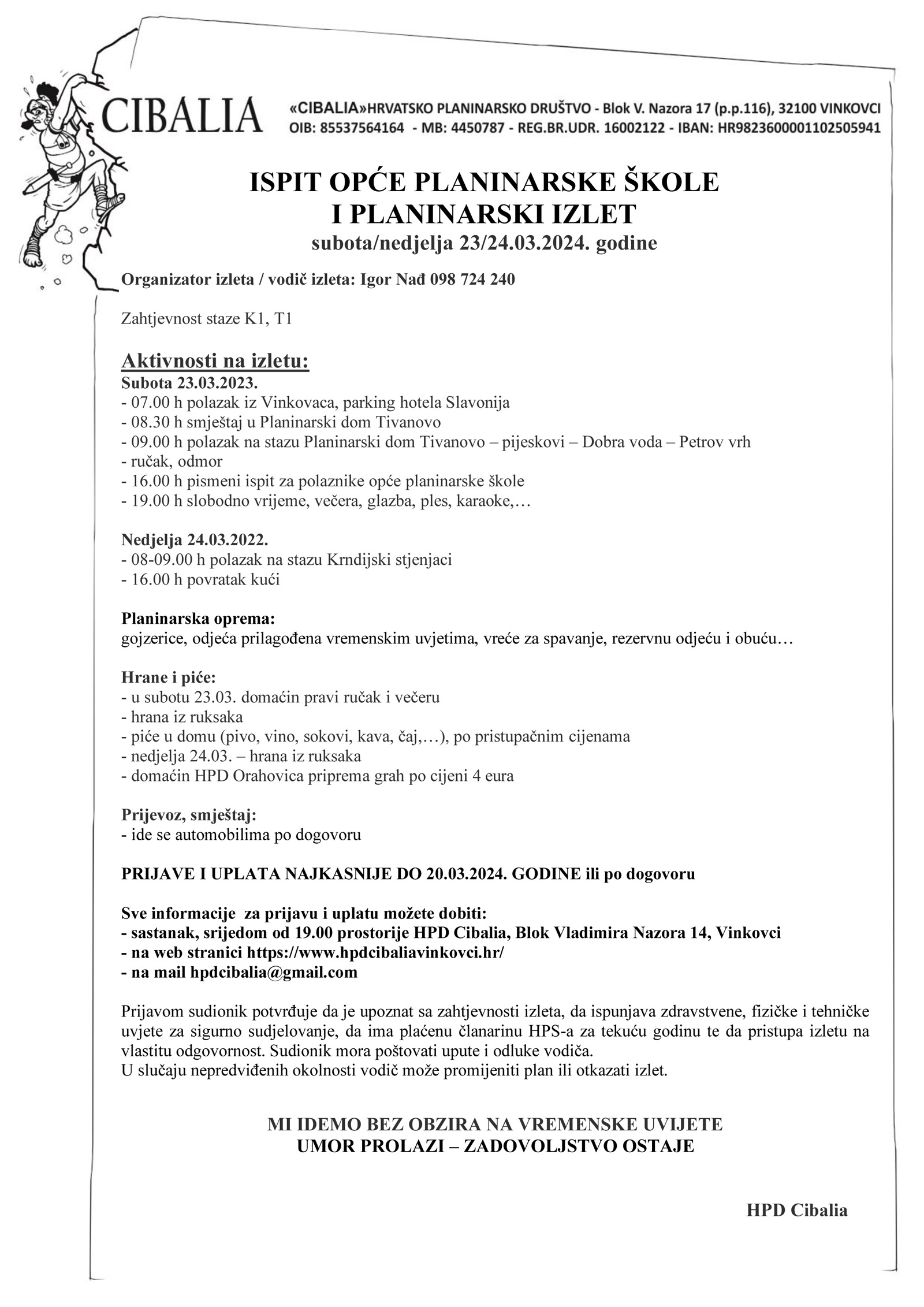 Organizator i vodič: Igor Nađ, 098/724-240