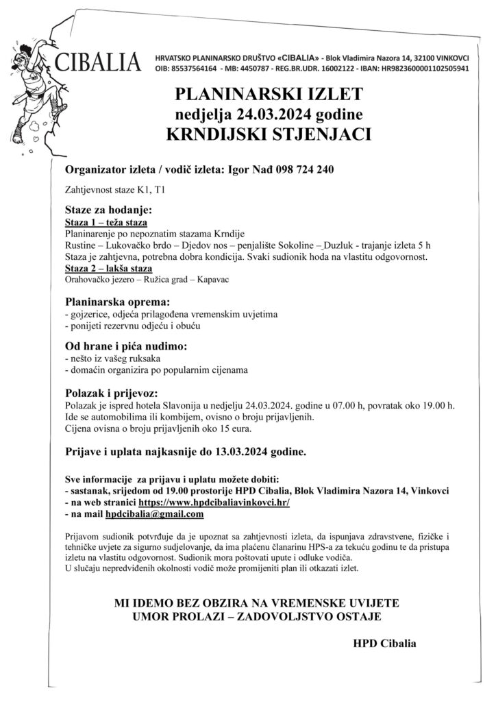 Iako je uvršten u program Opće planinarske škole, planinarski izlet Krndijski stjenjaci je izlet za sve planinare i hoda se u nedjelju, 24. ožujka 2024. godine.