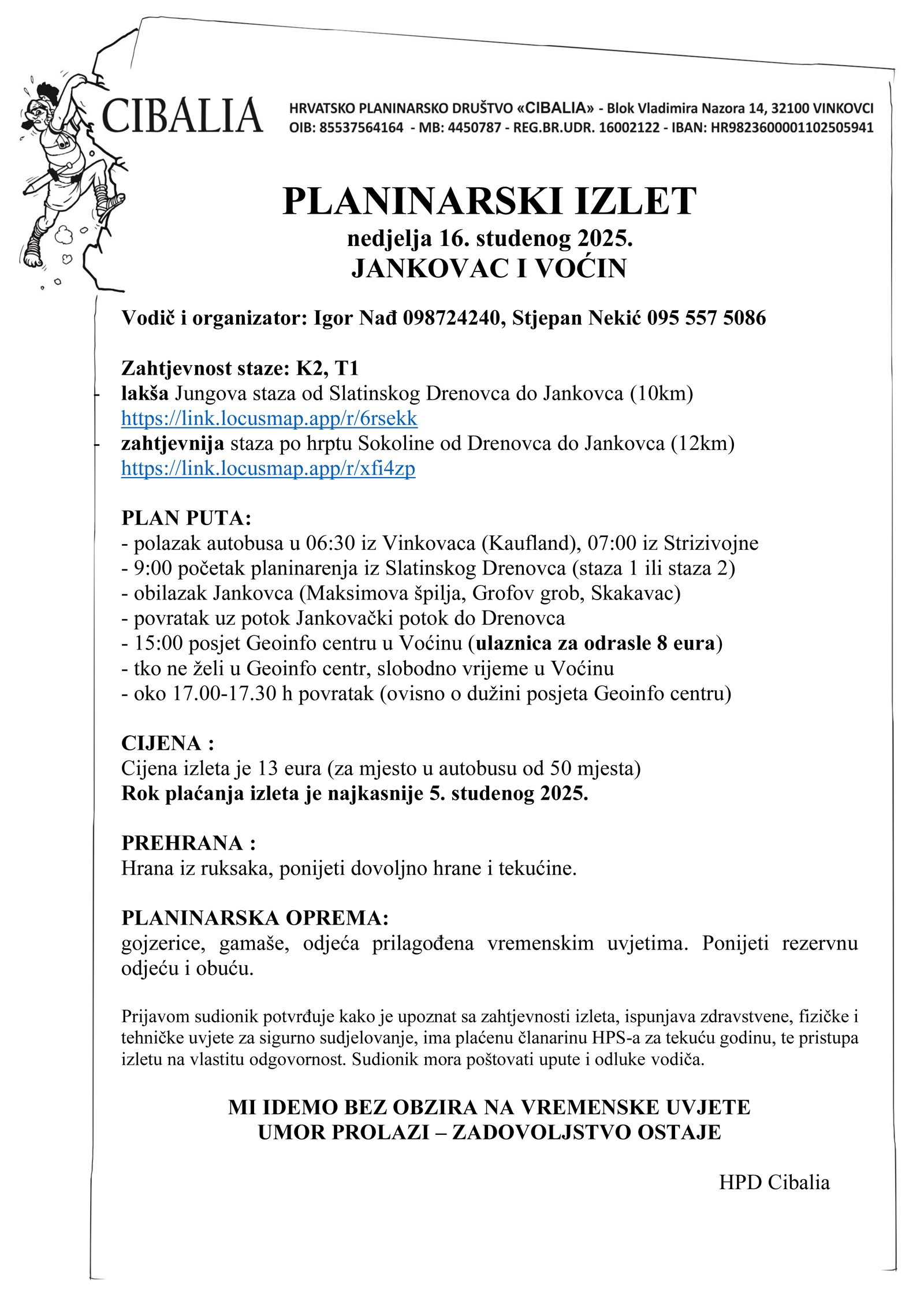 Organizatori i vodiči: Igor Nađ: 098/724-240 i Stjepan Nekić: 095/557-5086